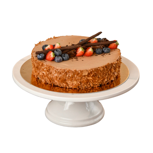 Delikatny mus z mlecznej belgijskiej czekolady oraz śmietany na spodzie czekoladowym.